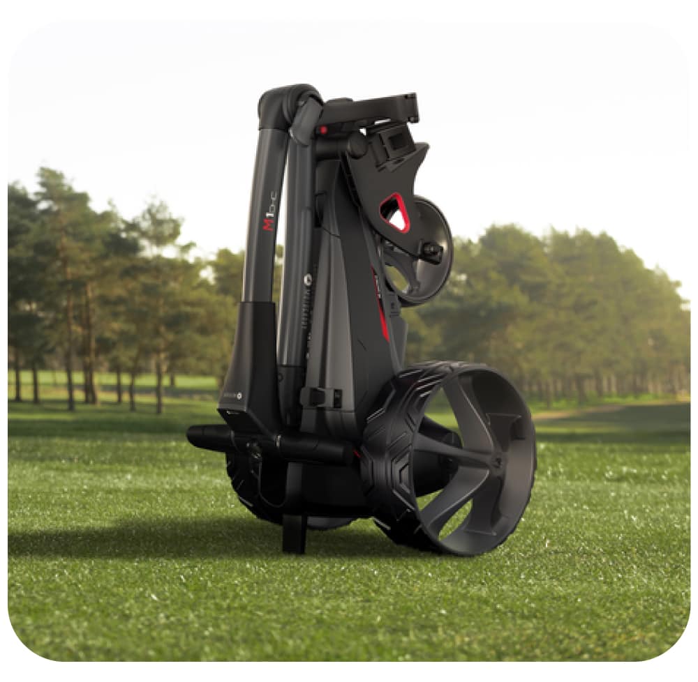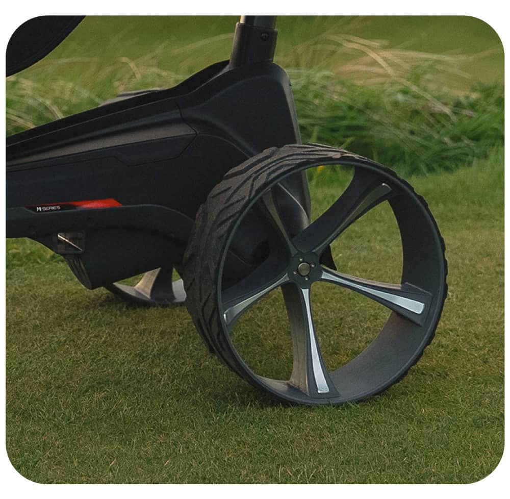 With enhancements such as rubberised tyres for superior traction and wear resistance, and the new cable-free Lithium battery system, the M1 is designed to provide a seamless and worry-free experience on the golf course.