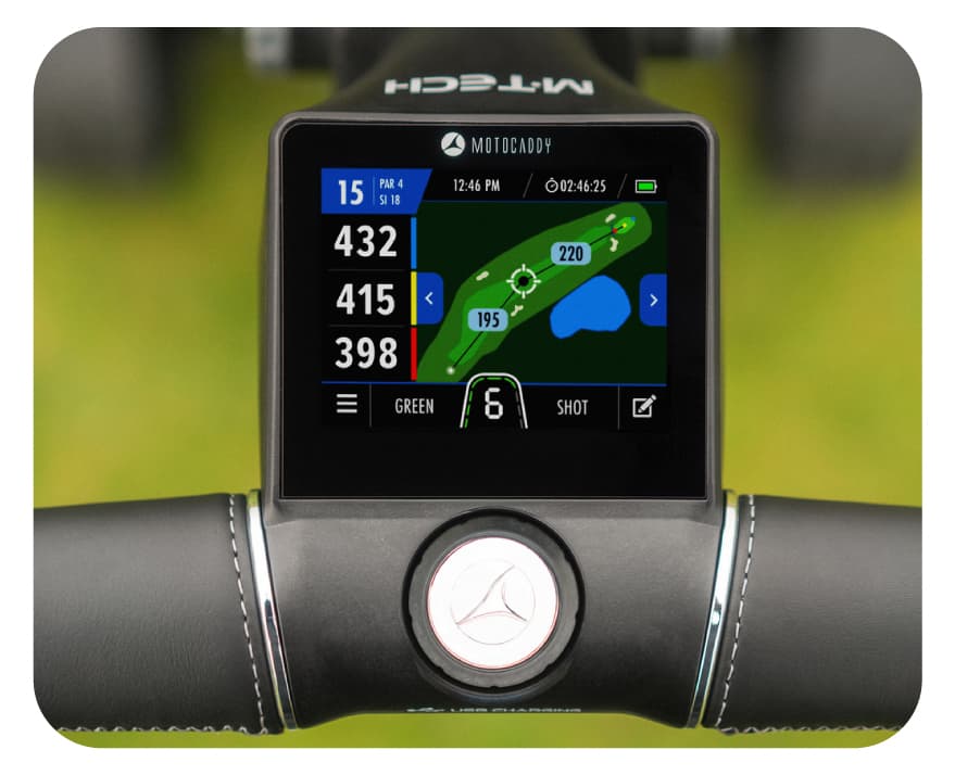 Crystal-clear 3.5” touchscreen display, the M-TECH GPS provides access to over 40,000 preloaded courses, delivering accurate distances to the front, middle, and back of the green, plus essential hazard mapping and drag-and-drop pin positioning.
